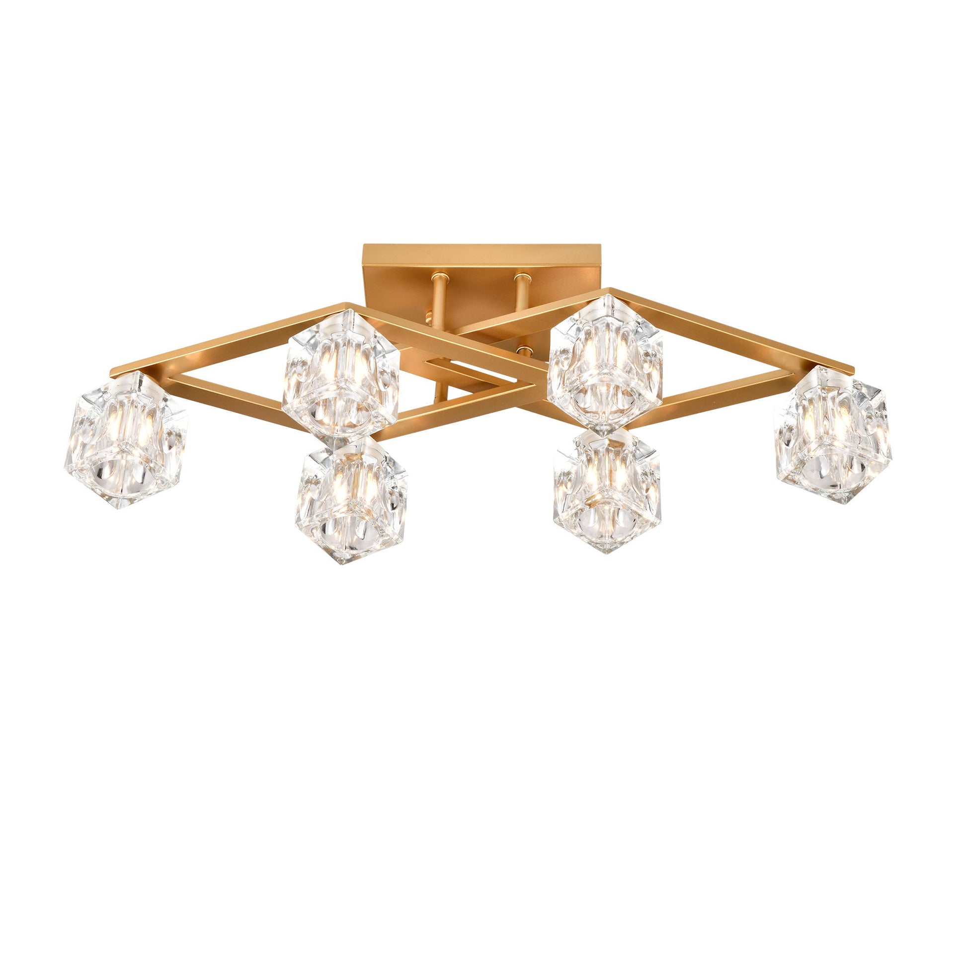 6 Light Crystal Ceiling Light For Dining Room, Modern Ceiling Lamp With Light Fixture For Entryway, Lobby, Kitchen, Bedroom, Living Room, Conference Room, (6*G9 Bulbs Included) - Gold