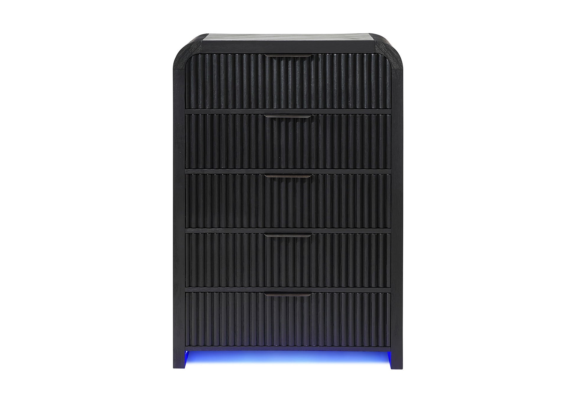 The Beckett Chest brings form and function together with a black finish, white faux marble top, and fluted drawer fronts that add texture and visual interest. Integrated LED lighting adds a touch of ambient sophistication, while the five roomy drawers provide practical storage.