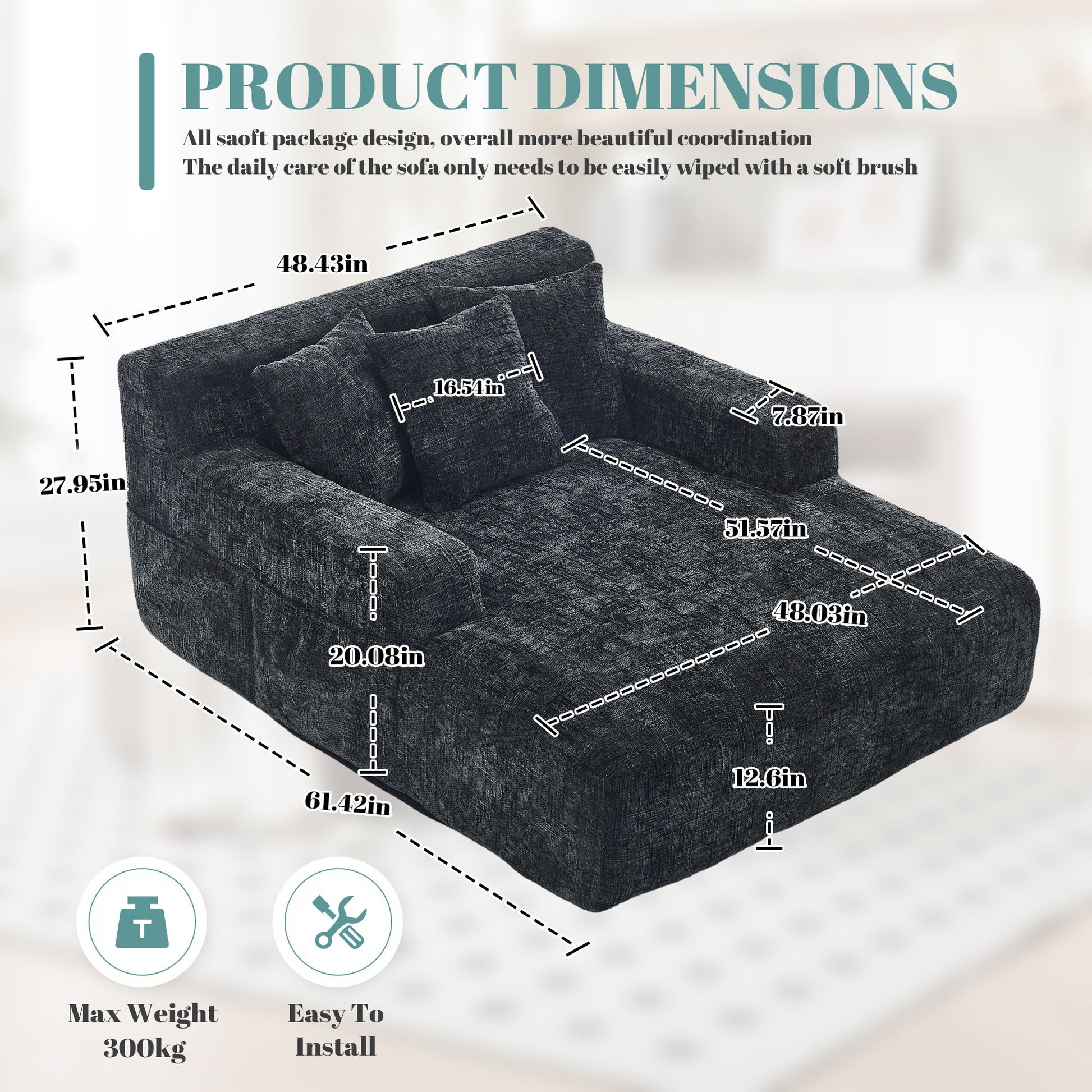Chenille Interior Lazy Sofa Chaise Lounge Armchair With 3 Pillows And Armrests, Soft Chenille - Black