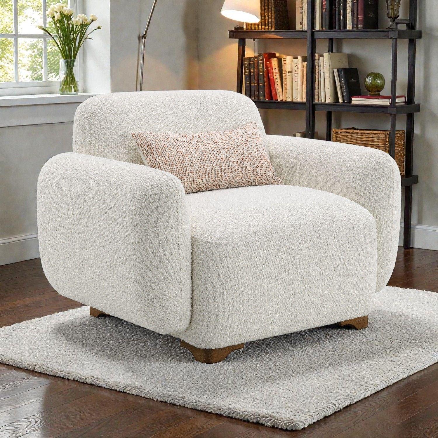 - Soft Boucle Upholstery: Premium fabric offers a textured, inviting surface