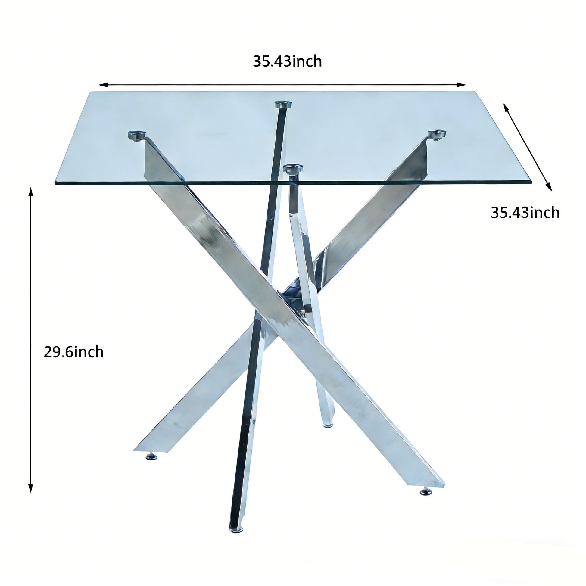 Dining Table With Cross Metal Leg And Tempered Glass, Modern Space Saving Kitchen Table For Living Room Legs, Square Table - Chrome