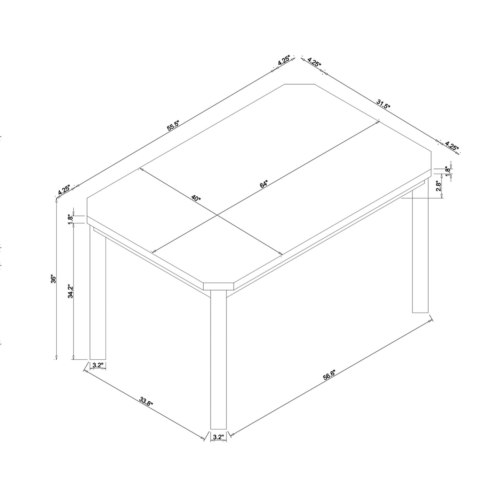 64.0"W x 40.0"D x 36.0"H - 121.0 lb