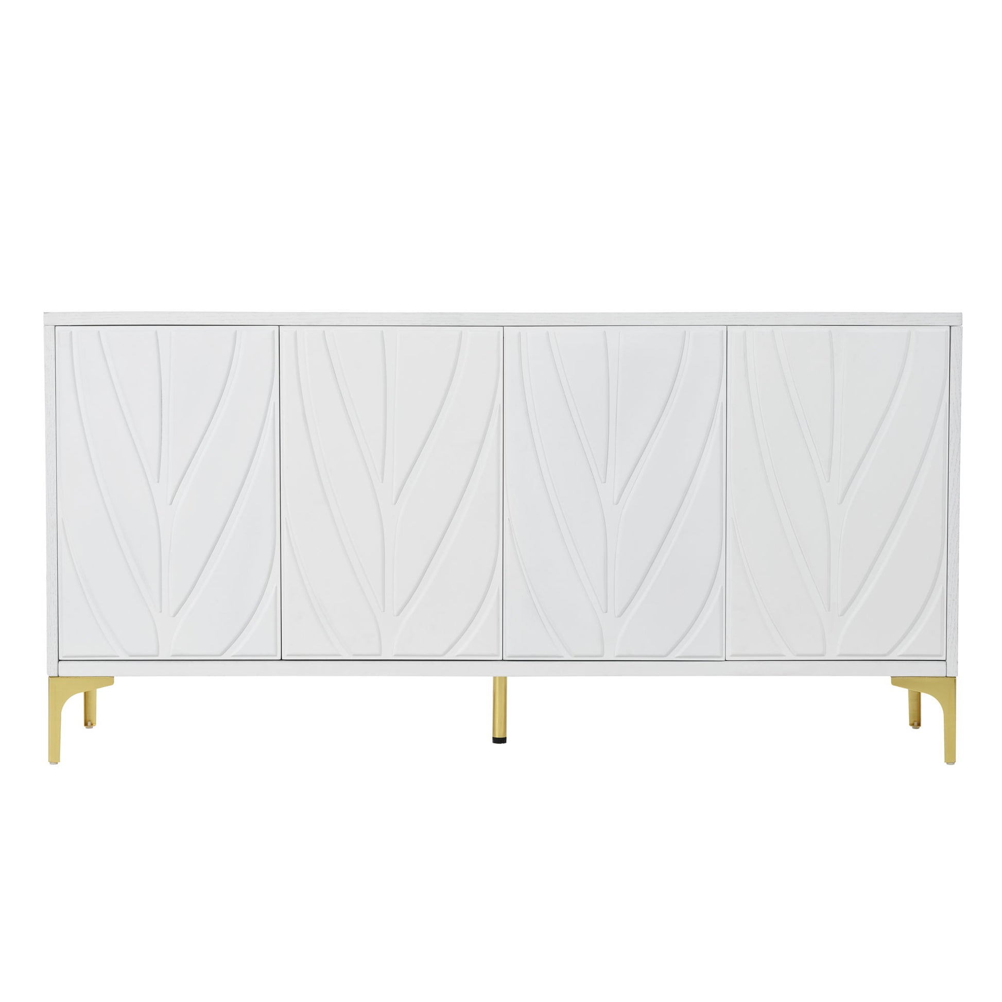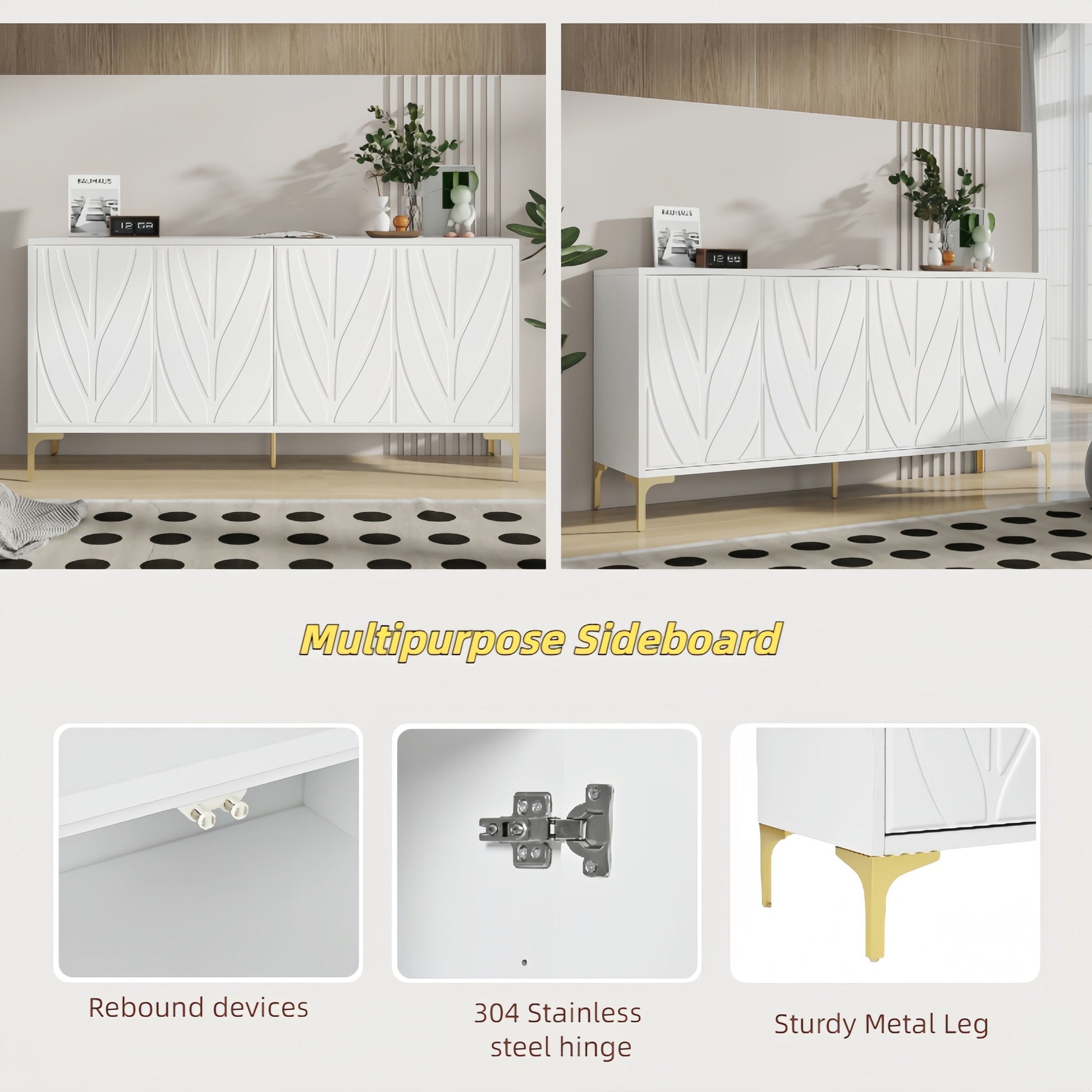 Creative Carved 4 Door Sideboard With Handleless Press To Open Design - White
