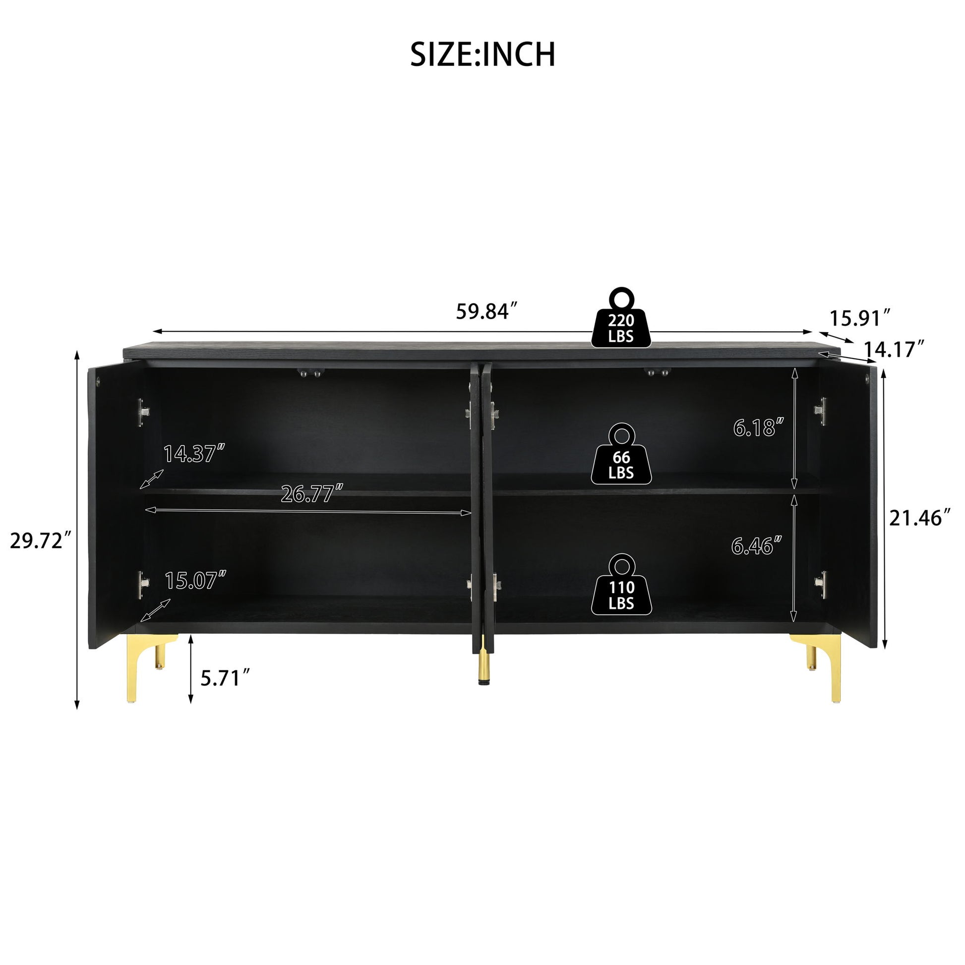 Modern Sideboard Buffet Cabinet With Handleless Press To Open Design, Carved Credenza Storage Cabinet With 4 Doors Construction - Black