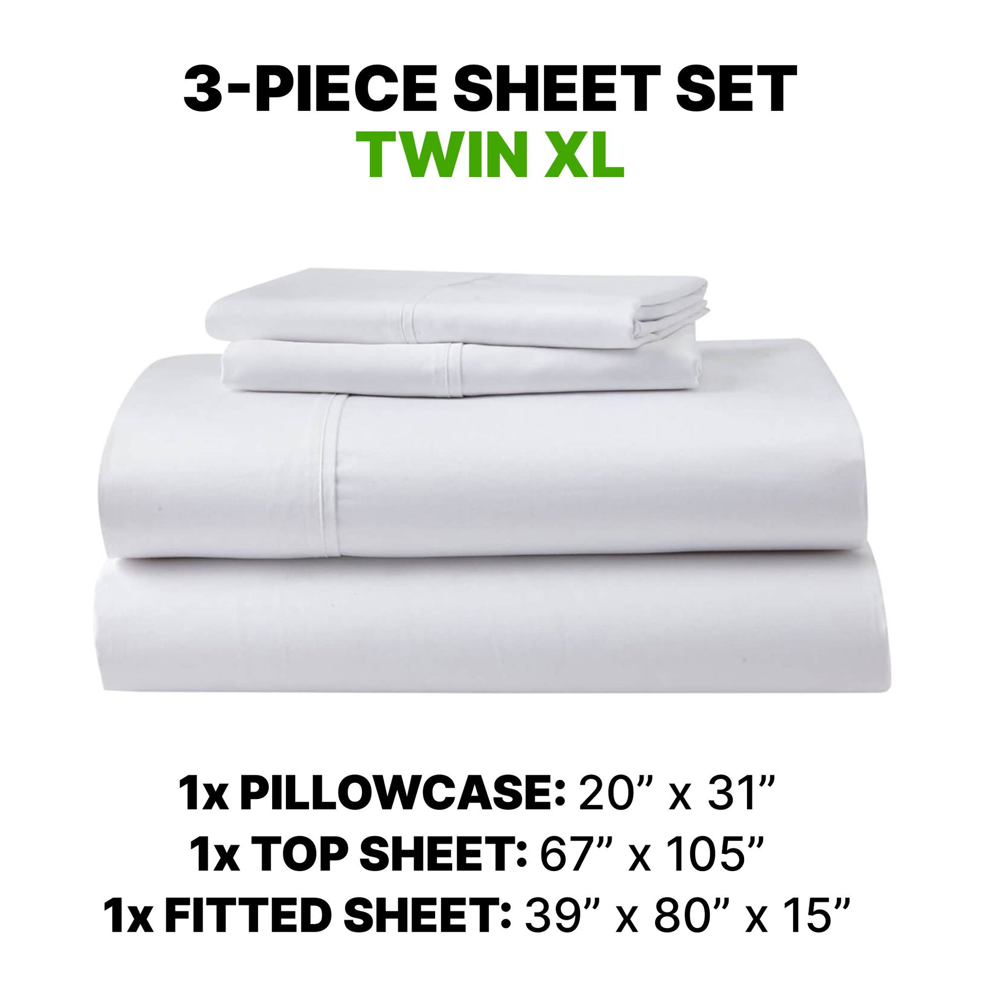 Sheet Set Twin Long Luxury Supima Cotton & Tencel Blend, Wrinkle Resistant, Breathable, 2 Ghostgrip Band - White