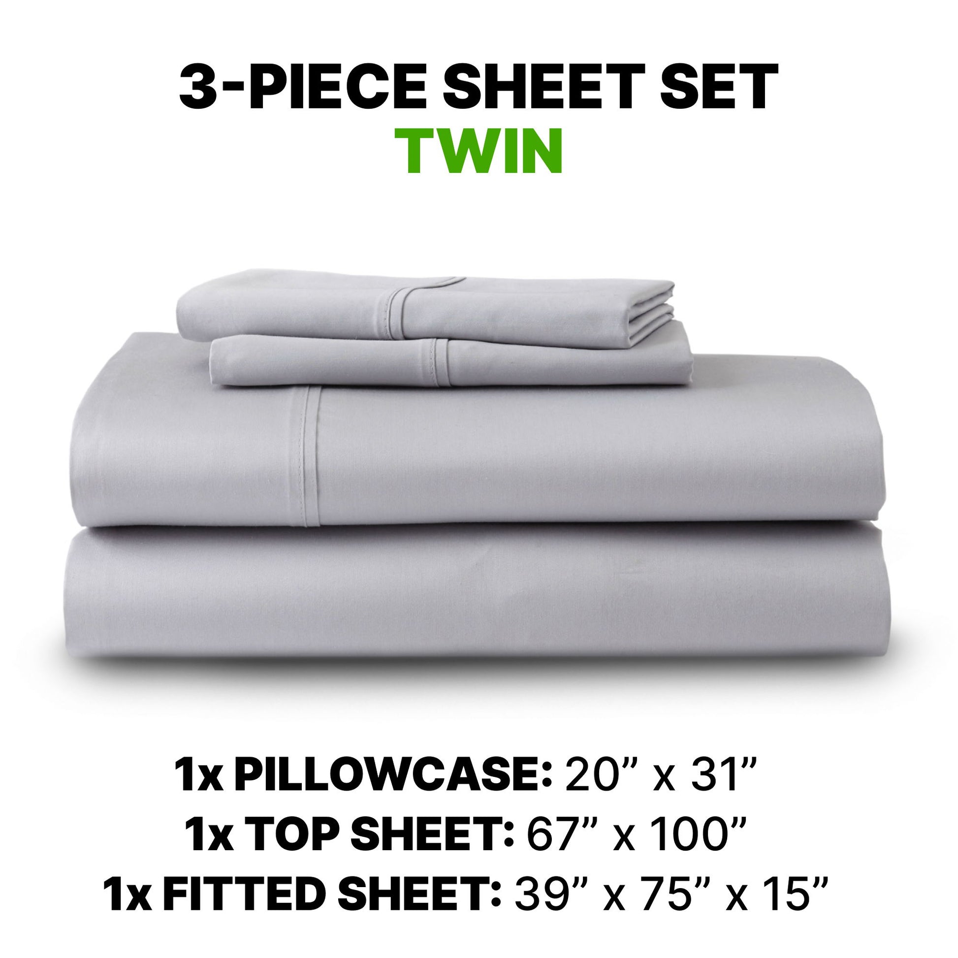 Sheet Set Twin Long Luxury Supima Cotton & Tencel Blend, Wrinkle Resistant, Breathable, With 2 Ghostgrip Band - Gray
