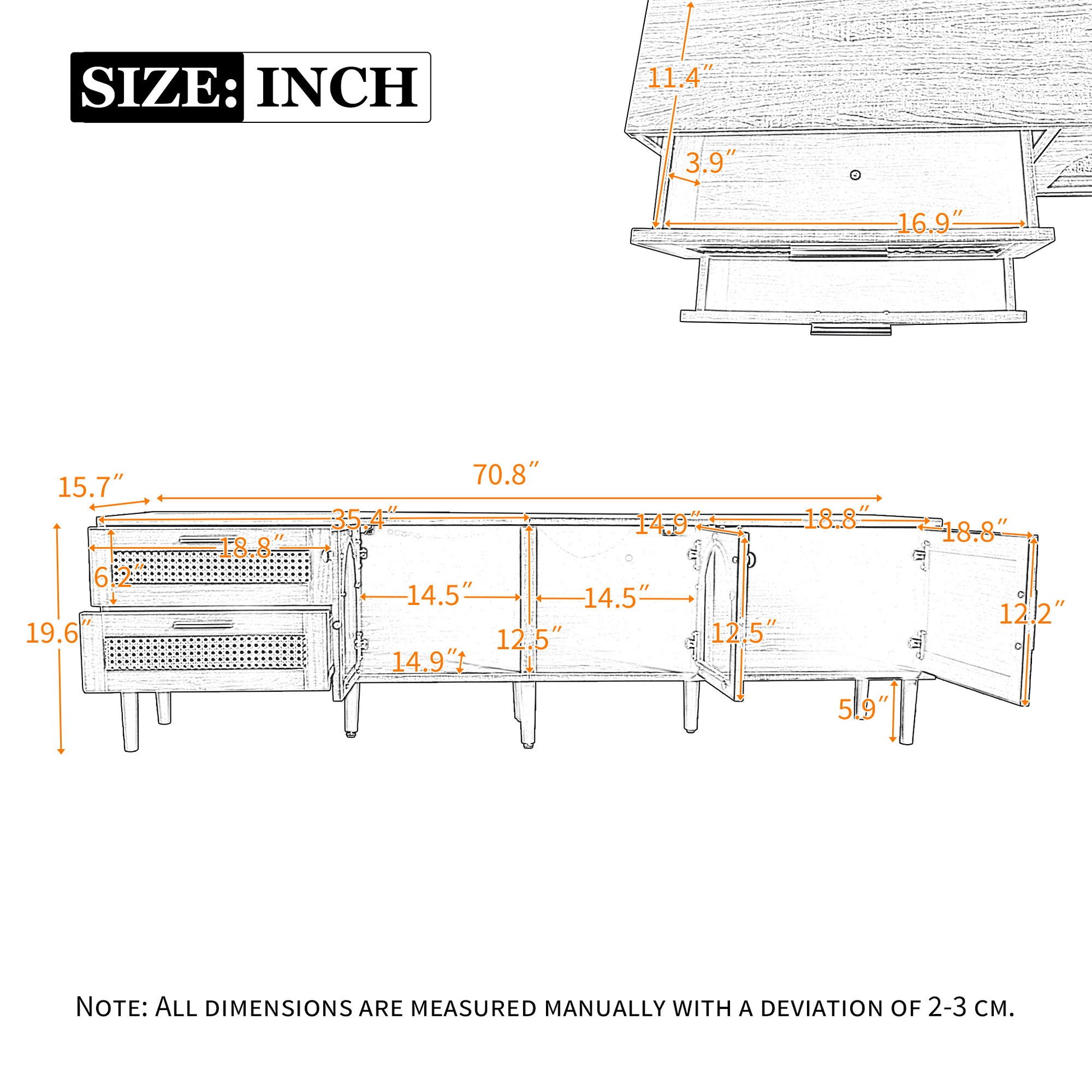 70.8"W x 15.7"D x 19.6"H - 75.18 lb