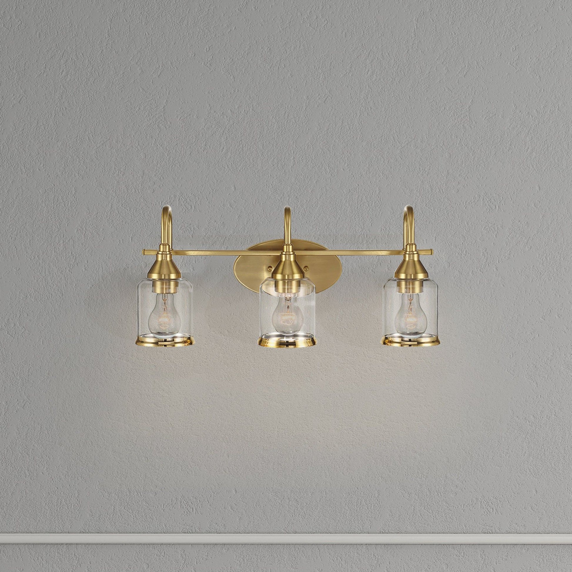 3 Lights Brush Vanity Light - Clear / Gold