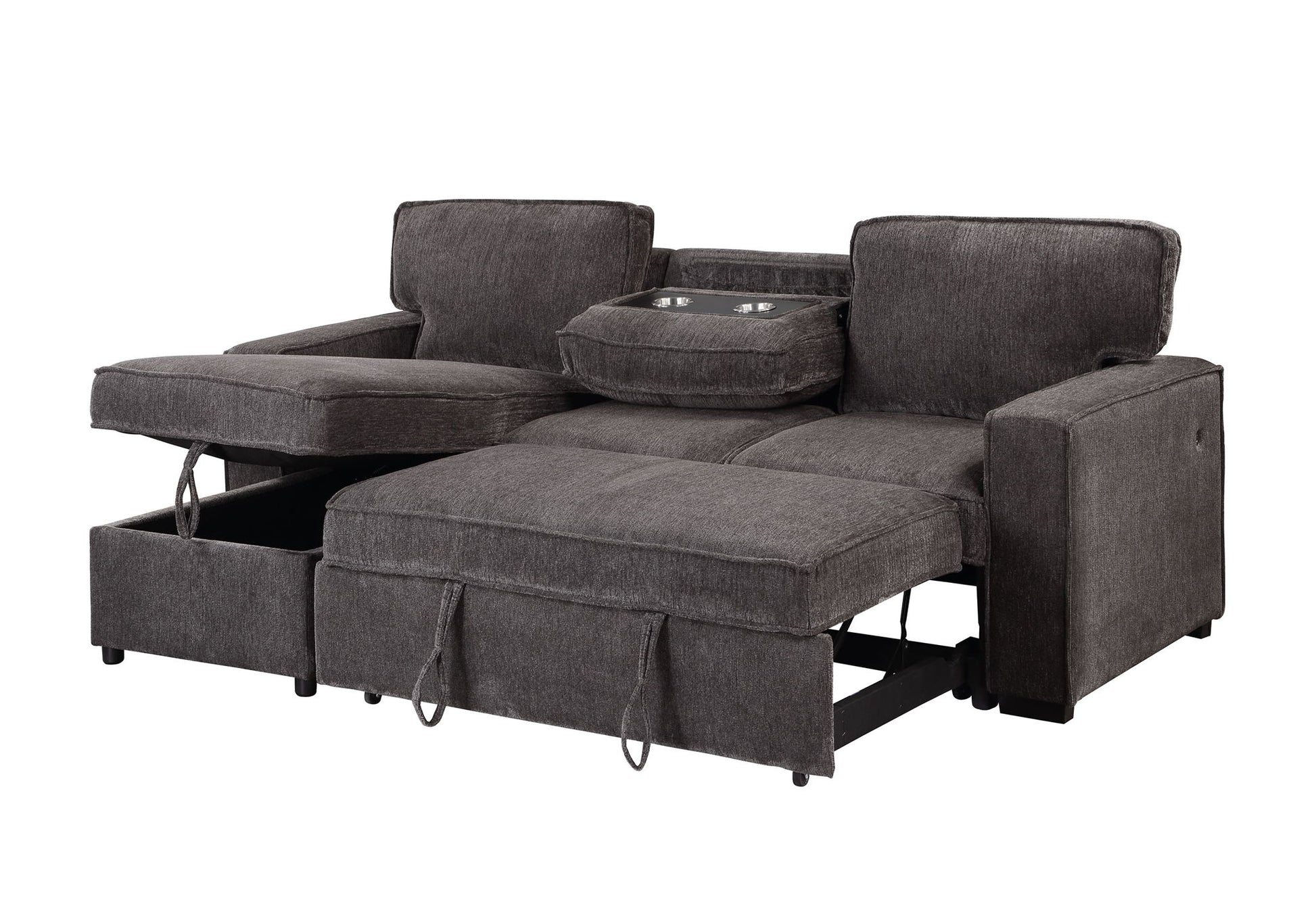 U0203 - Reversible Sofa Bed With USB Port And 2 Arms - Dark Gray