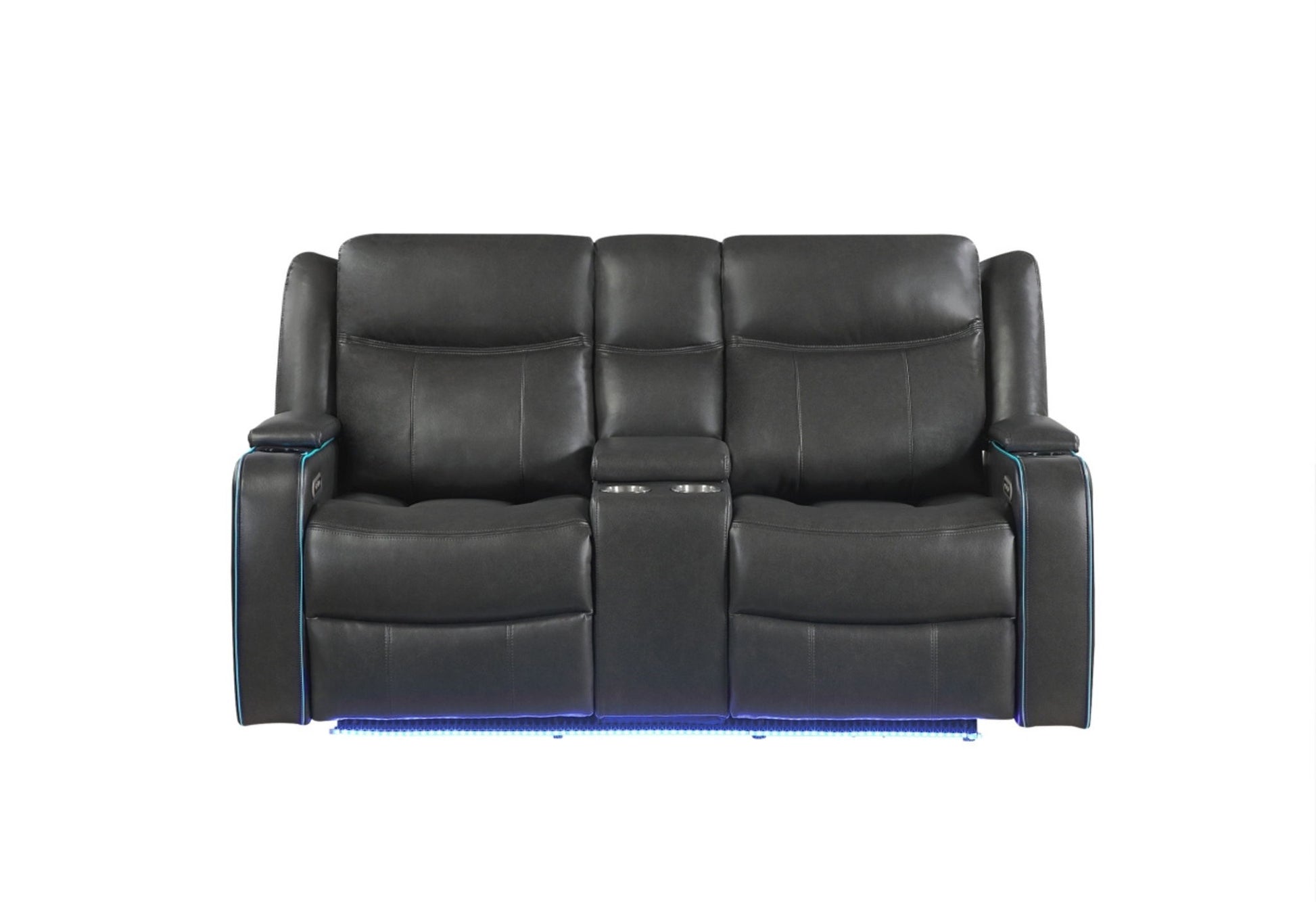 UM2768 - Power Console Reclining Loveseat With Power Headrest, LED Lights, LED Welt Storage Arms, LED Cupholders And USB A/C - Charcoal