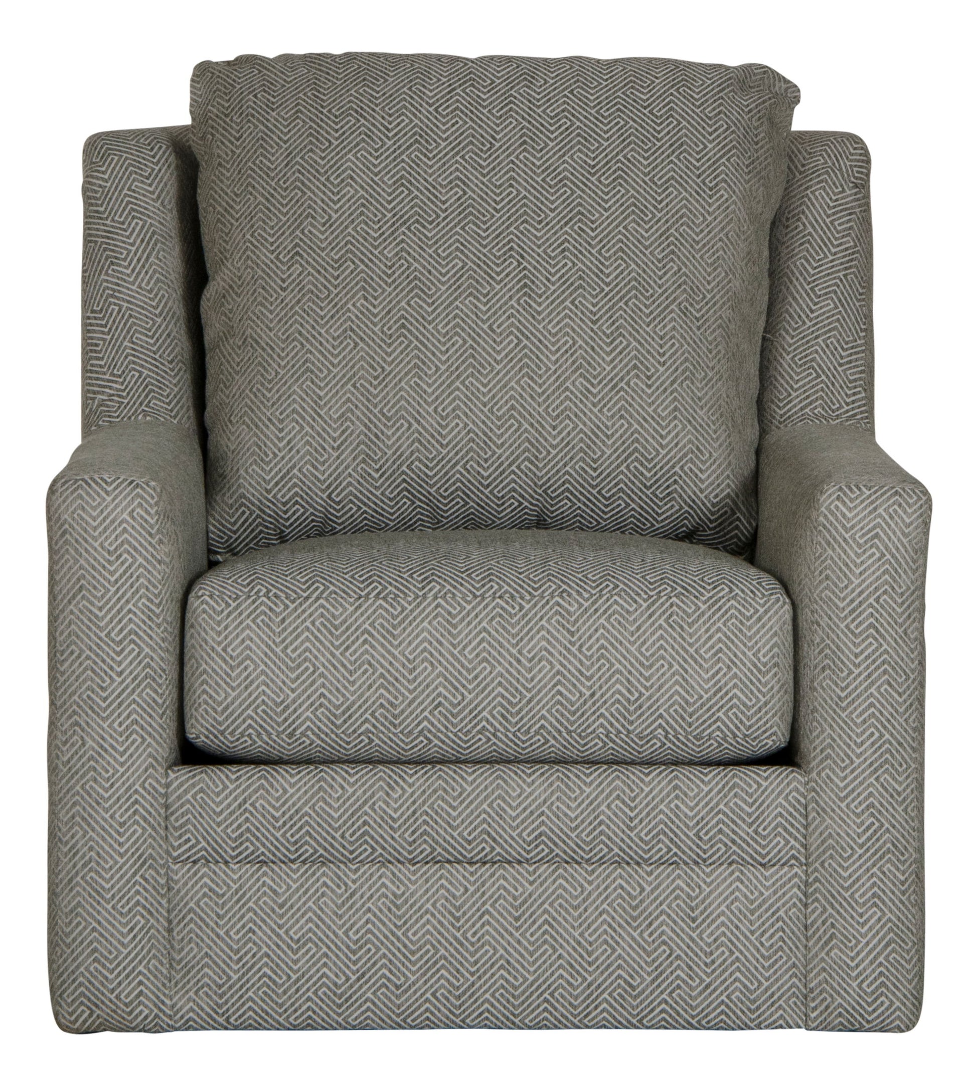 The Zeller collection a contemporary "Shark Fin" arm with an exlectic mix of contemporary pillows in Spa colorations. Correlating Cocktail Ottoman and Swivel Chair also available.